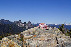 For years I took pictures of the views from all four points of the compass while on a summit and for decades now have gathered small cobbles from waterfalls, coastal beaches, and stones too from trails and summits themselves... The rituals climbers have when contributing to those cherished summit registers includes many creative and thoughtful gestures placed up at altitude. I have read so many priceless comments in these tiny journals...